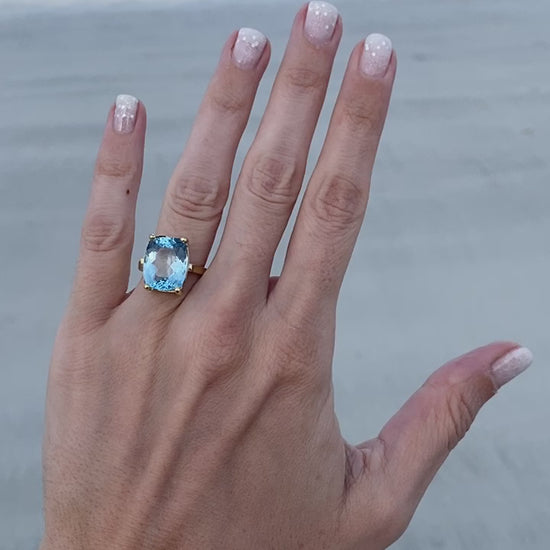 Anillo de oro amarillo 18kt, con topacio natural Swiss Blue de 9.62 ct.