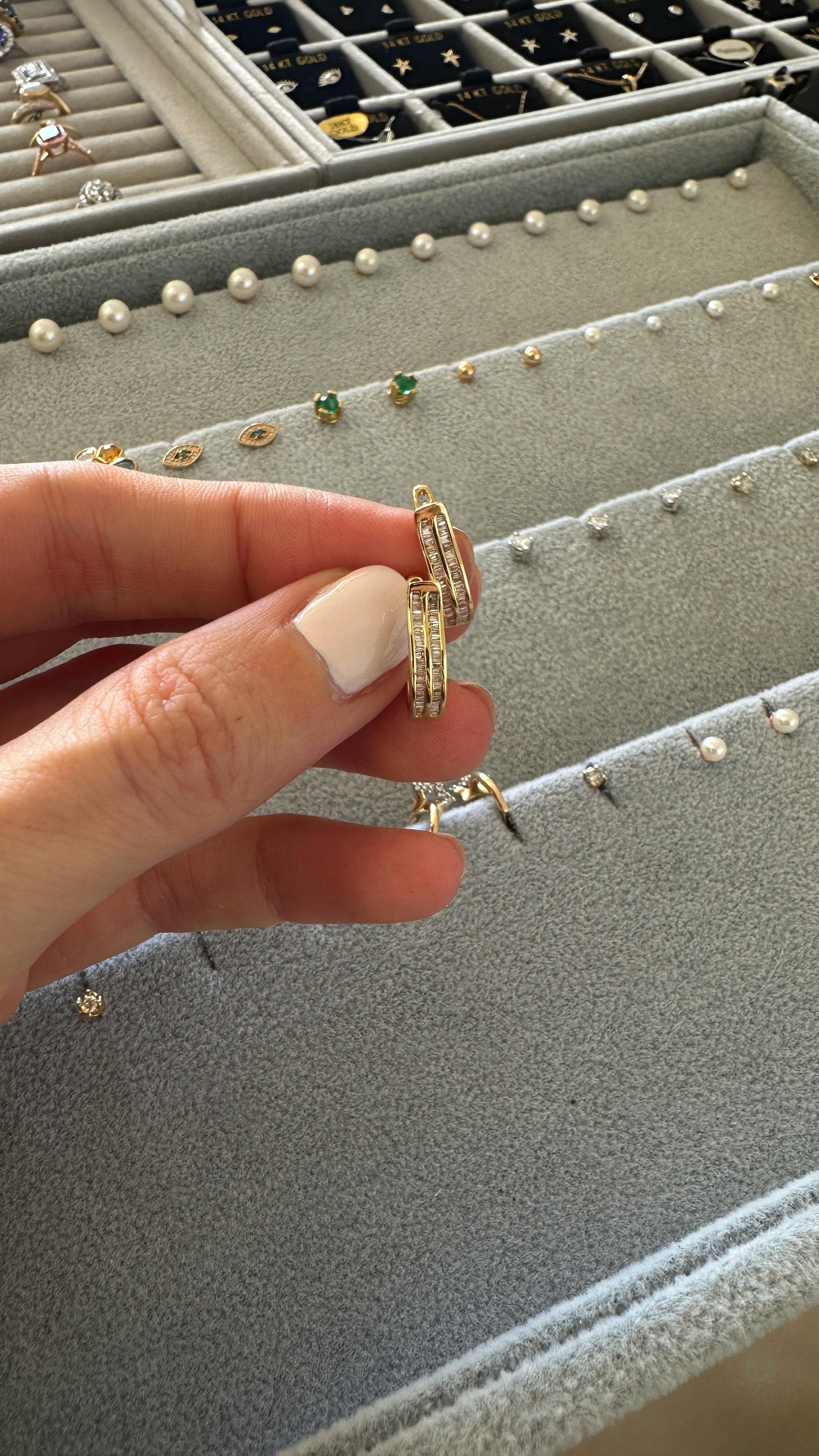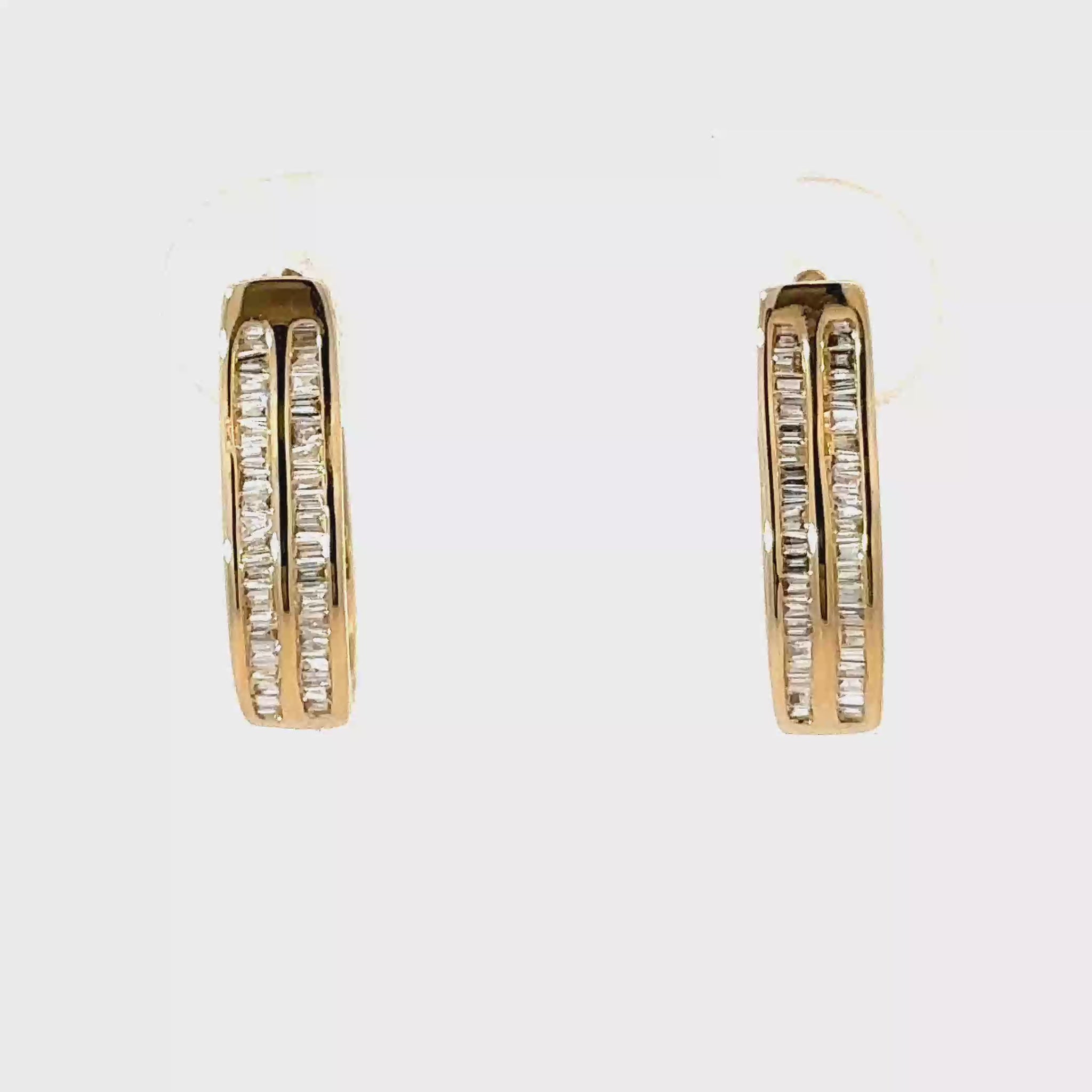 Los aritos Nebula irradian una luz amplia y definida, gracias a la pureza geométrica de sus diamantes baguette, cuidadosamente seleccionados para potenciar su brillo direccional. Con un total de 0,282 ct, cada piedra aporta un destello nítido, creando un efecto luminoso elegante y contemporáneo.